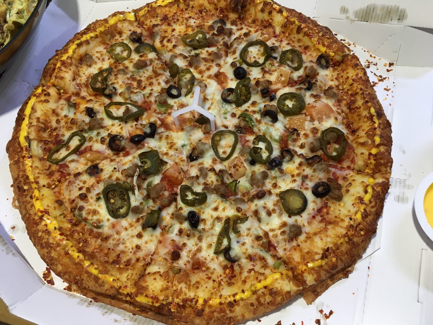 파파존스 피자는 거의 한 10년 전에 처음 먹어보고 이번이 두 번째 인 것 같다. 안그래도 요즘 피자가 엄청 땡겼었는데, 정말 반가웠다. 요즘 파파존스에서 나온 신메뉴라고 한다. '더블 핫 앤 스파이시 멕시칸 피자' 이름이 좀 길다. 모양은 이렇게 생겼다. 지금 보니 또 군침이 돈다. 겉에 뿌려진 것이 모두 빻은 고추이다. 여기에 매운맛의 할라피뇨가 곳곳에 있다. 그 외에도 이것저것 다양한 토핑이 올라가 있어서 색깔이 다채롭고 맛도 맛있다. 이 피자의 특징을 정리해 보았다. 1. 도우가 쫄깃하니 매우 맛있다. 2. 중간에 씹히는 찰토마토가 맛있다. 3. 할라피뇨와 빻은 고추의 조합이 피자의 느끼함을 싸악 잡아준다. 4. 먹을 때는 잘 몰랐는데, 점점 매운 맛이 느껴진다. 5. 다 먹었는데도 느끼함이 없다..
